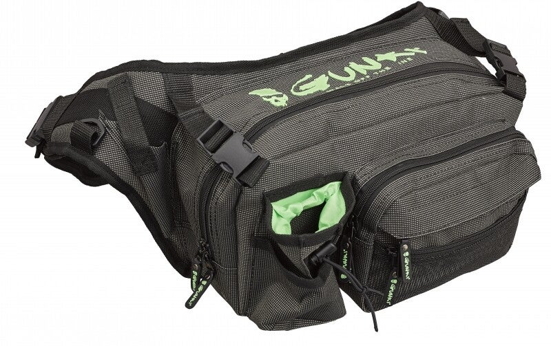 Buiktas voor de sportvisser die graag meer materiaal meeneemt. Groot draagcomfort en blijft prima zitten. Met een groot centraal vak voor een kunstaasdoos, veel eenvoudige toegankelijke vakken met ritssluiting, een houder voor een fles drinken, een holster voor een tang en een extra schouderriem.