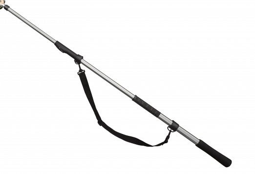 De steel is gemaakt van extra sterk en solide aluminium en met een transportlengte van 60 centimeter bijzonder praktisch. De eigenlijke innovatie is de handgreep: door een in het middendeel geïntegreerd schuifsysteem slaan de drie delen in een handomdraai uit en kan het net worden gebruikt. De lengte bedraagt dan 120 cm (zonder net). Het frame is gemaakt van stabiel vierkant aluminium van 15 mm doorsnee en wordt simpel in de standaard schroefdraad bevestigd.