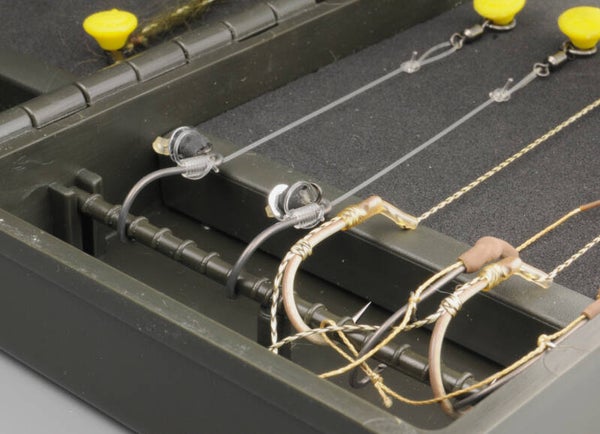 Perfecte ABS kunststof Rigbox met goede sluitingen. Voorzien van kleine opbergvakjes voor spelden of accesso ires zoals wartels. Perfect voor het strekken van stiff rigs. Wordt geleverd zonder inhoud.