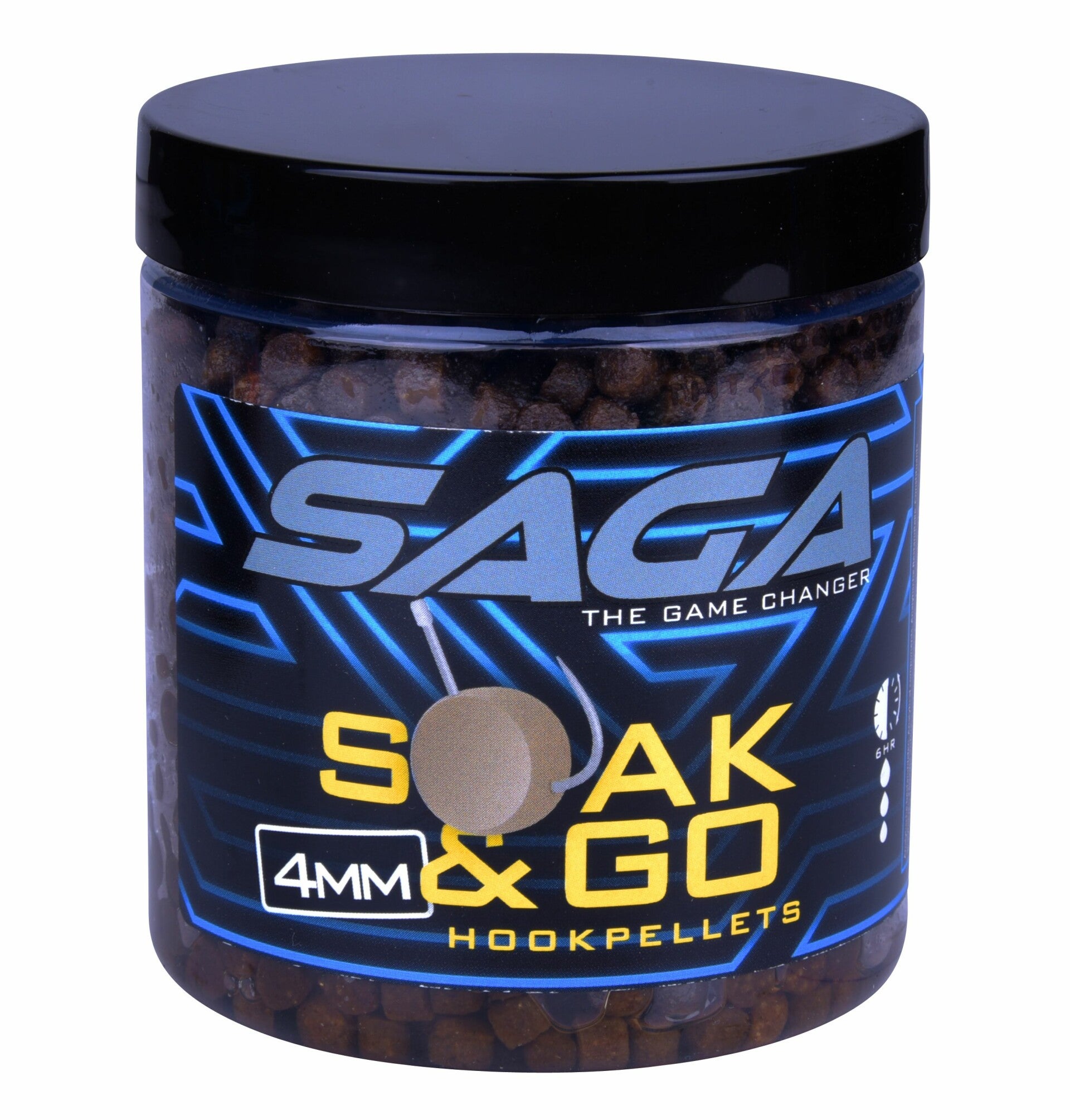 De Soak & Go Hookpellets vormen een haakaas waar alle soorten vis op commercials gek van zijn. Door deze pellets simpelweg onder water te plaatsen(6h), zwellen ze gelijkmatig op en worden ze tot in de kern zacht. Hierdoor zijn ze eenvoudig op een haak te prikken zonder dat ze open scheuren. Het gebruik van een pelletpomp behoort nu dus tot het verleden. Soak & Go Hookpellets zijn verkrijgbaar in 3,4, en 6mm uitvoering, waardoor ze op alle formaten vis en in elk jaargetijde inzetbaar zijn. Saga Soak & Go pellets worden geleverd in een handig hersluitbaar potje.