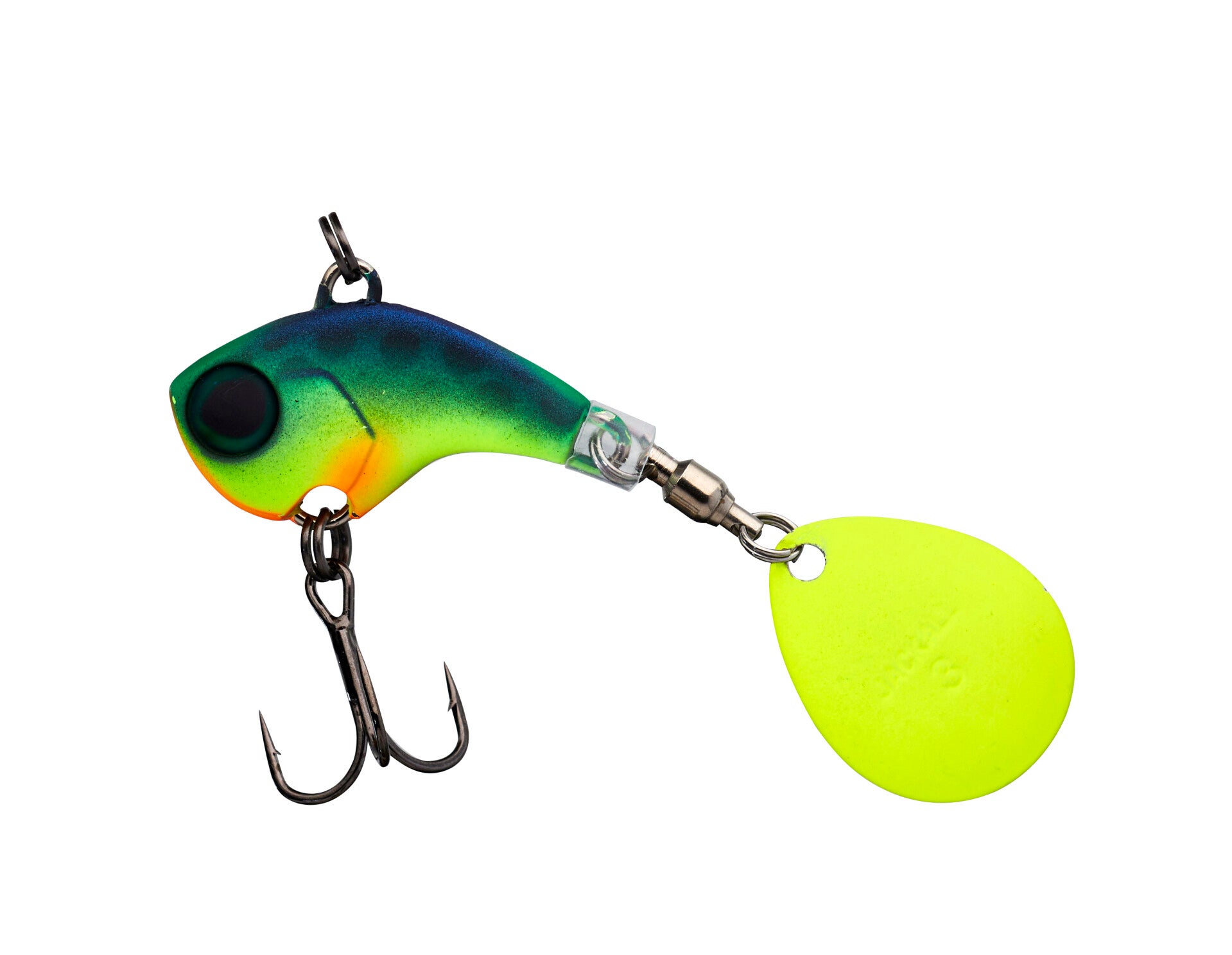 De DERACOUP is een kleine tail spinner waarmee men snel en effectief grote wateroppervlaktes kan afspeuren. Klein maar echt zwaar voor zijn grootte en kan heel ver worden geworpen. Heel eenvoudig te vissen, ongeacht of u snel of langzaam binnen vist. De beoogde vissoorten zijn baars, roofblei, kopvoorn en ook forel.