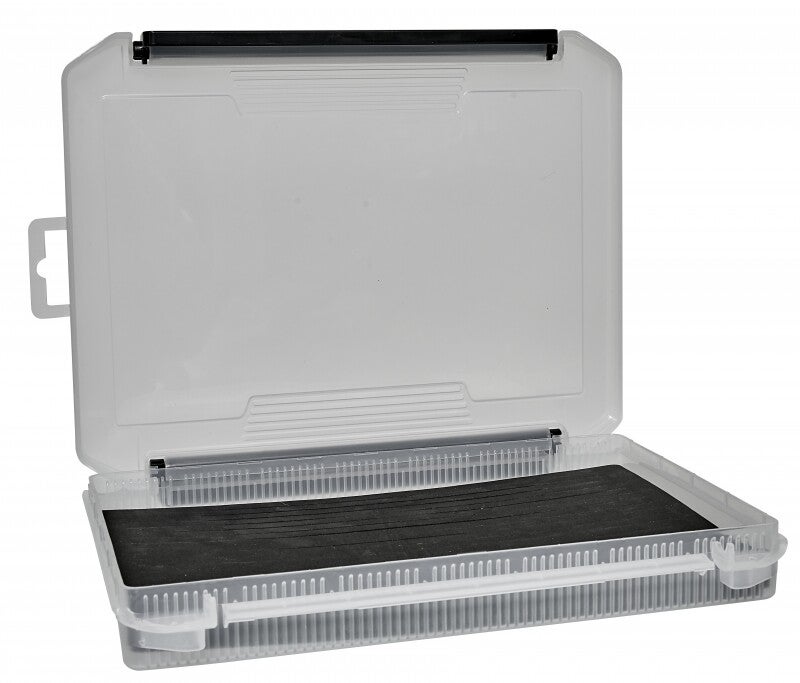 Perfect ontworpen doos voor het meenemen van loodkoppen, stinger rigs en kleiner kunstaas, dat met de haak in het geribbelde foam kan worden bevestigd. Deksel kan aan iedere zijde apart worden geopend voor snelle toegang, met name wanneer de doos in een andere tas opgeborgen is.