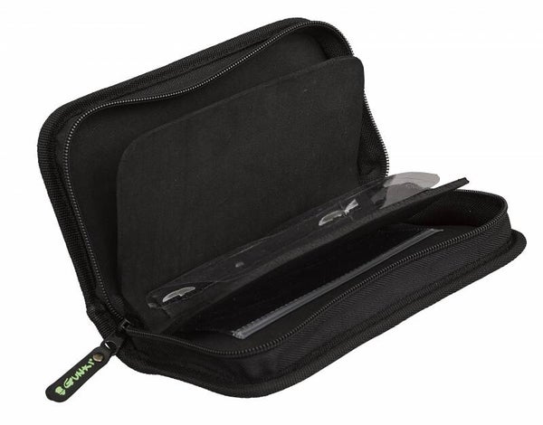 Klein en compact kunstaasétui. Aan de binnenzijde bevinden zich 6 stukken EVA die worden gescheiden door 3 vakken met ritssluiting. Simpelweg de haak van het kunstaas (lepels, kleine pluggen, loodkoppen) in het EVA plaatsen om alles veilig en overzichtelijk op te bergen. Met karabijnhaak ter bevestiging aan riem, broek, etc.