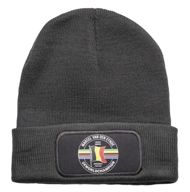 Een comfortabel one size MVDE muts voor de koudere dagen in de volgende kleuren:Blauw, grijs en zwart