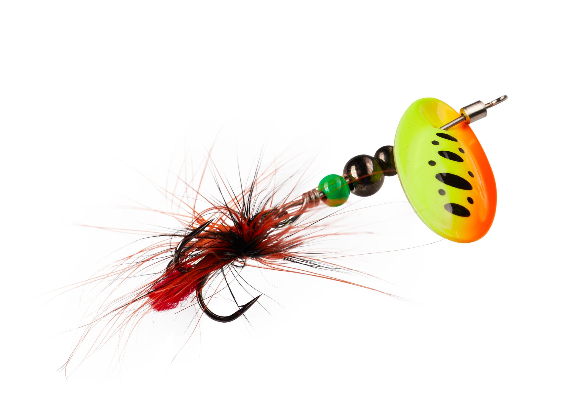 FLY: De dreg is voorzien van veren en ander materiaal om het volume van de spinners te vergroten en een extra trigger toe te voegen. Dit aantrekkelijke materiaal helpt overigens ook om de haak vrij te houden van wier en andere begroeiing.